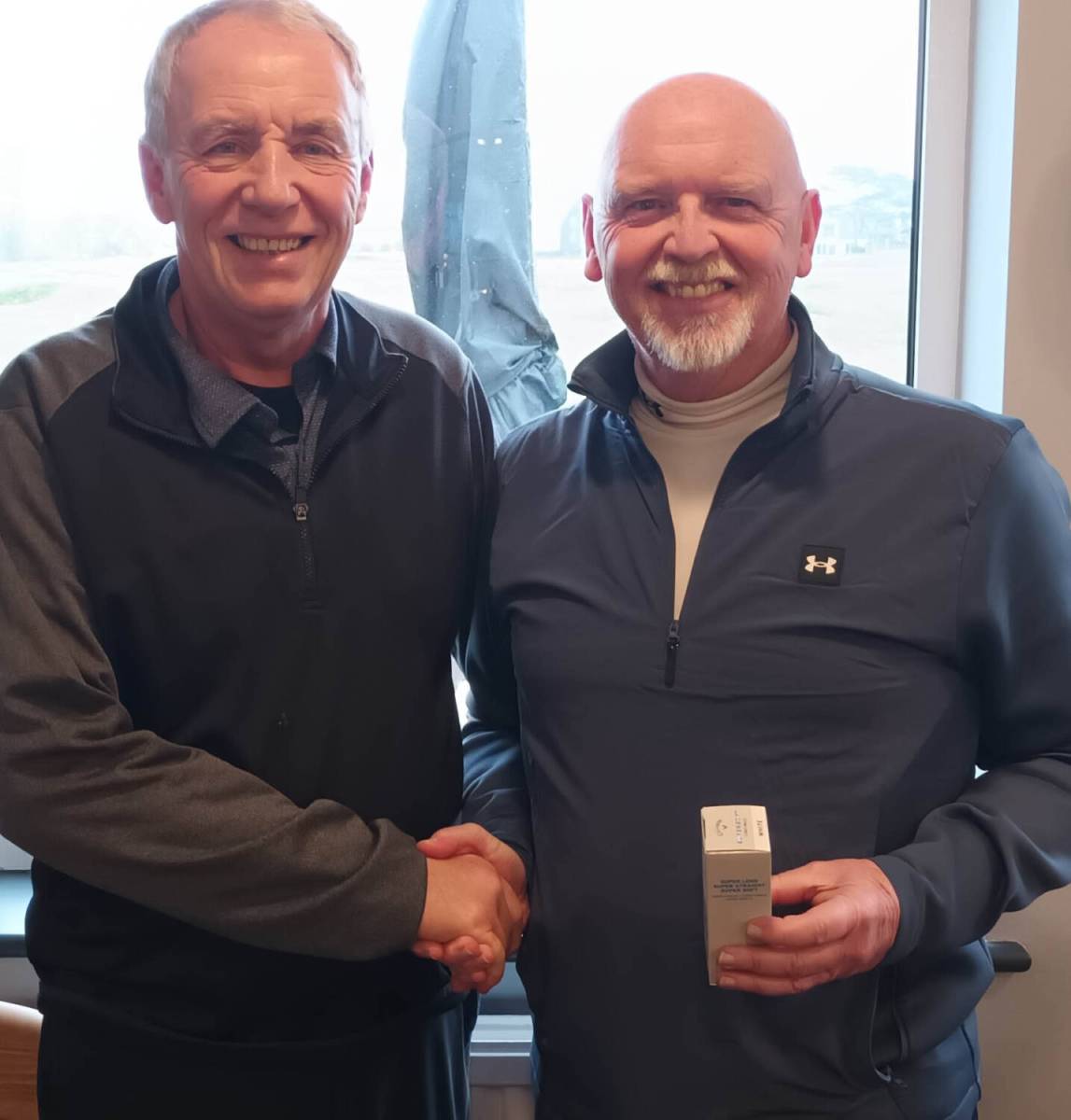 Spot prizes were restricted to just 2 nearest the pins won by Andy Mair and Ian Horsham, Simon Holmes monstered a 300 yarder to take longest drive.